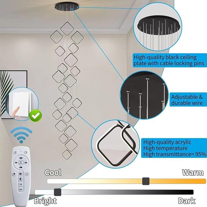 The Asymmetrical LED Chandelier brings a modern artistic touch to any space with its sleek geometric design. Crafted from premium aluminum, its adjustable hanging lights create a stunning layered effect. Perfect for staircases, foyers, or high ceilings, it adds elegance and depth to contemporary interiors.