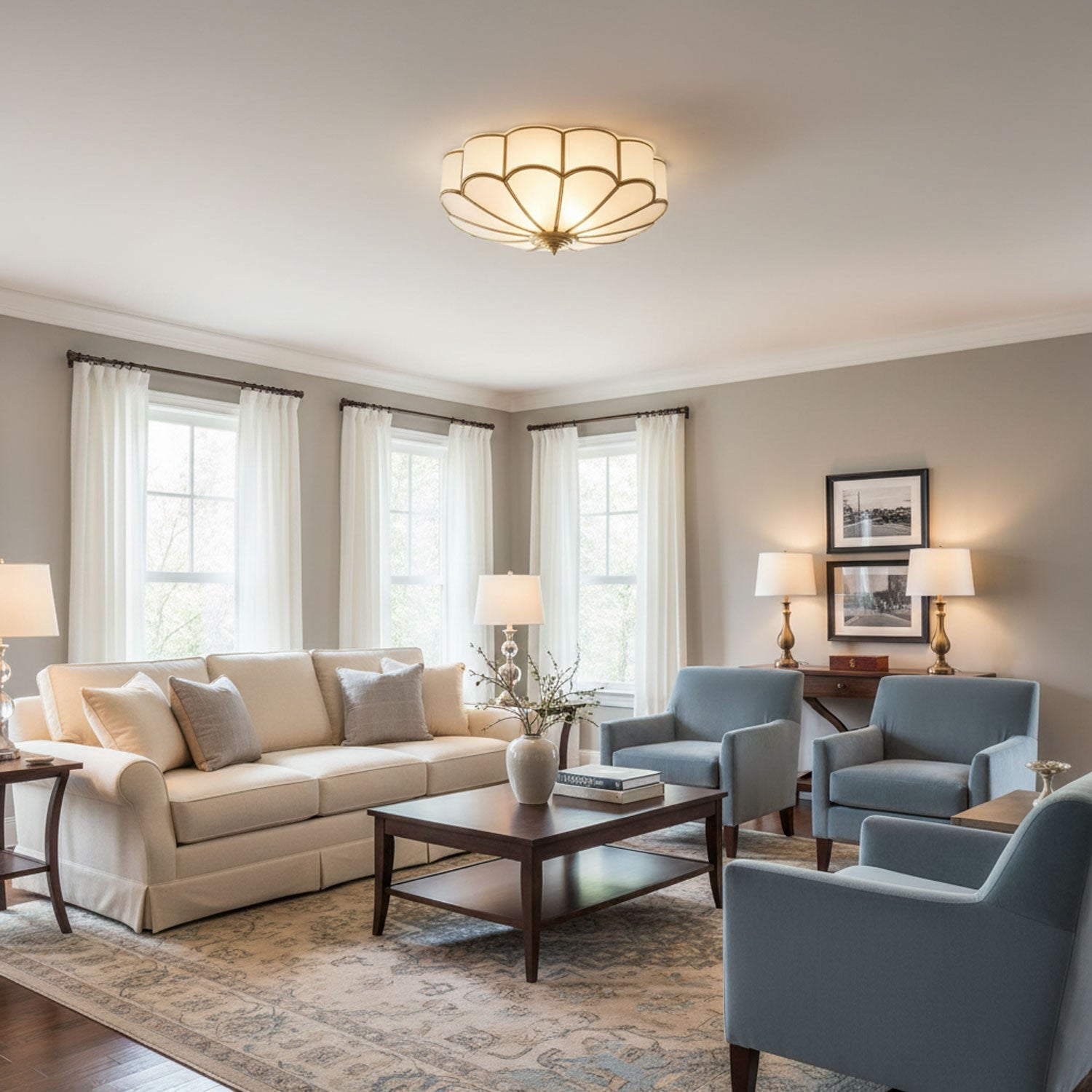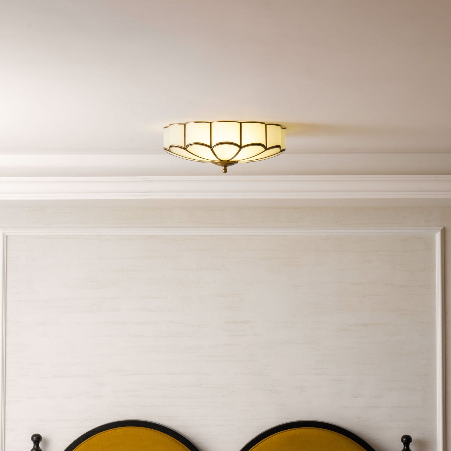 Elegant and artistic, this recessed ceiling light features a delicate flower-shaped frosted glass shade with a refined brass finish. Its soft, warm illumination adds a touch of luxury and depth to bedrooms, hallways, or living spaces — a perfect statement of modern craftsmanship and style.