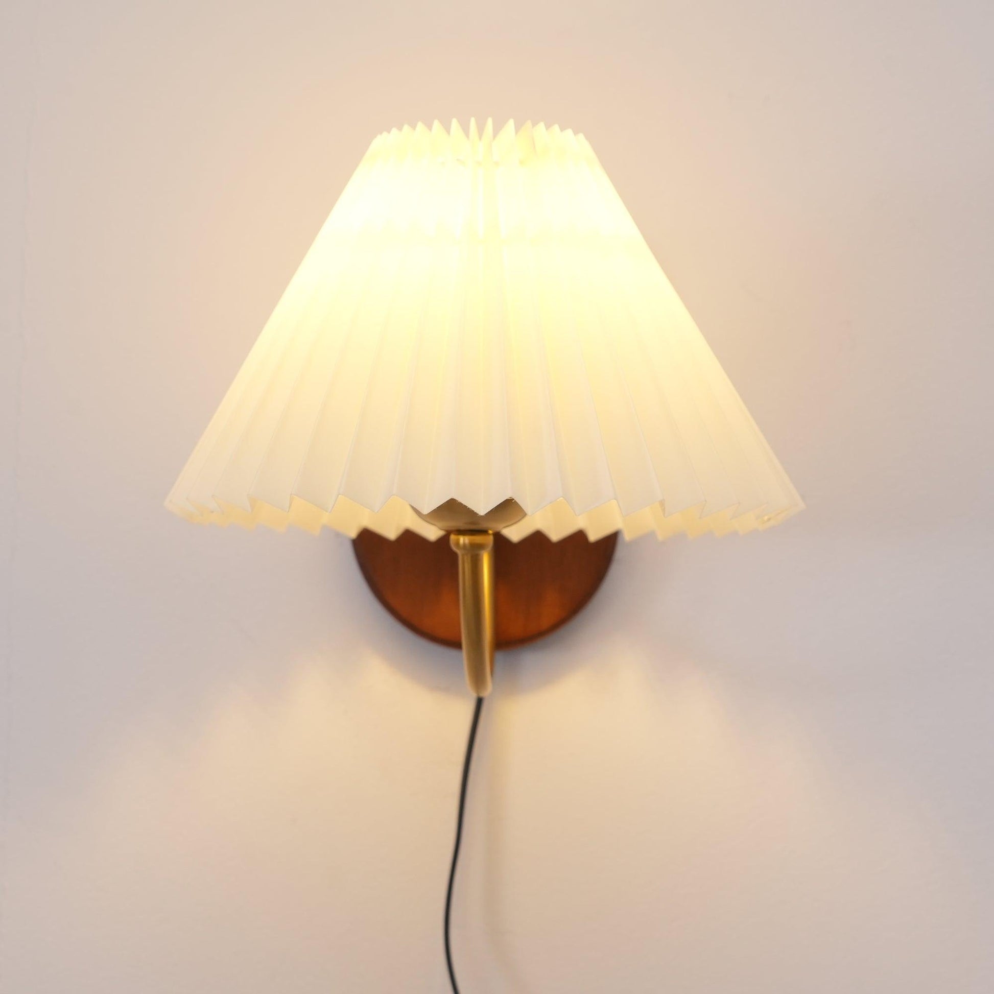 A warm blend of tradition and modern charm — the Louise Plug-In Wall Lamp features a walnut-tone wooden base, a soft pleated fabric shade, and elegant golden hardware. Its plug-in design offers effortless installation, making it perfect for bedside corners, reading nooks, entryways, or cozy living spaces. Create an inviting atmosphere with this timeless accent that brings softness, warmth, and subtle sophistication to any room.
