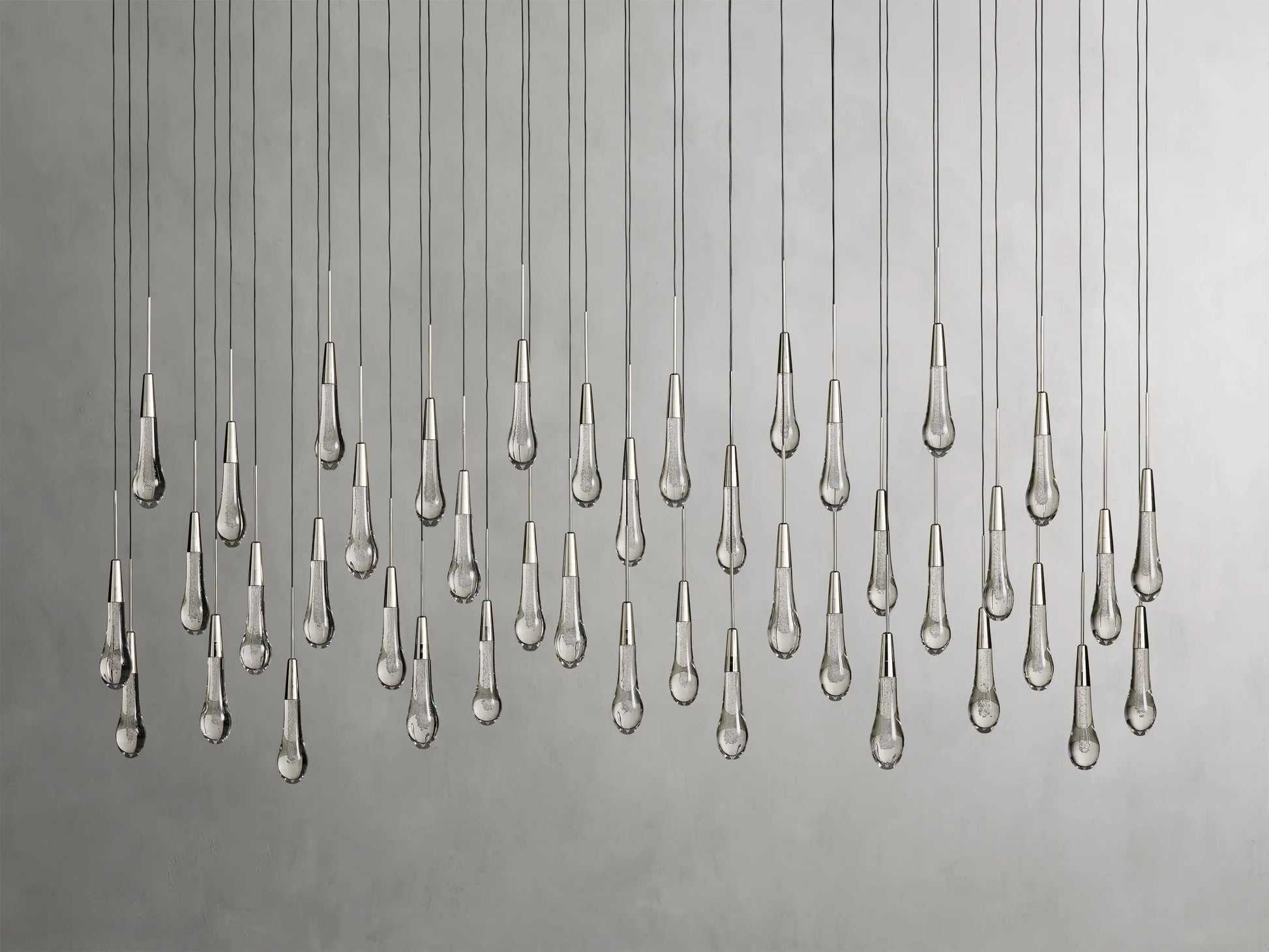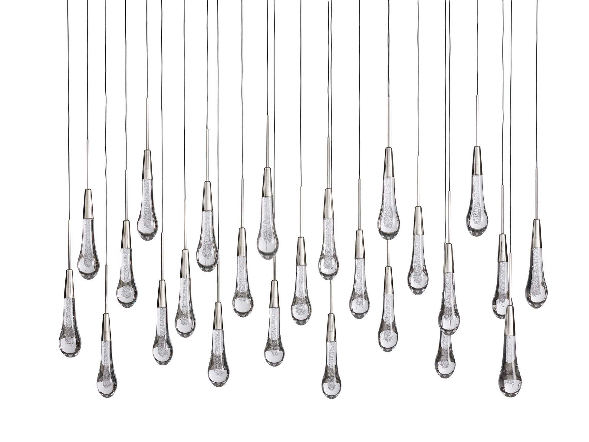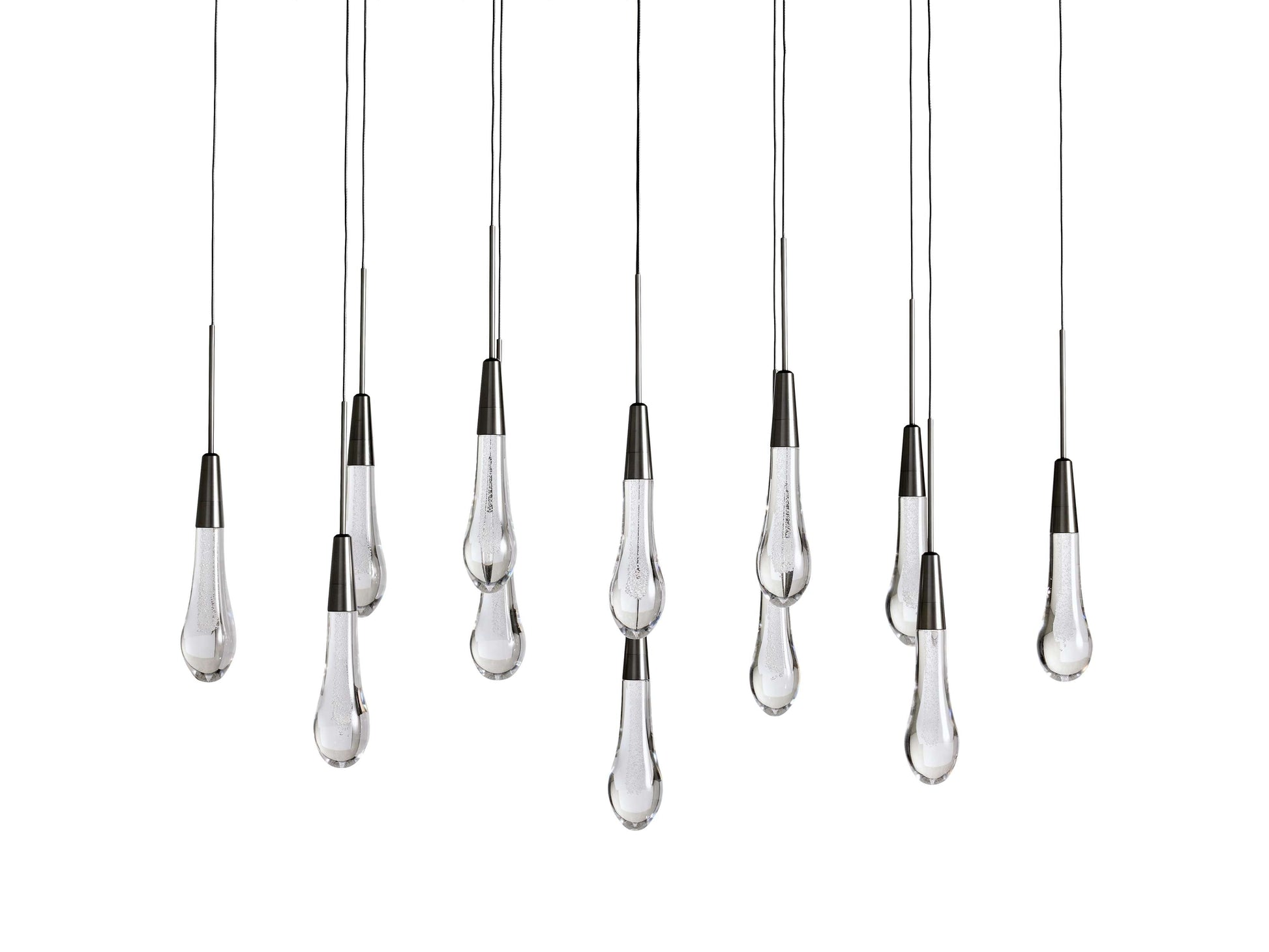 The Soltaire Raindrop LED Chandelier captures the elegance of nature with its cascading design of handcrafted seeded glass droplets. Suspended from adjustable black PVC cords, each drop glows with warm, integrated LED light, creating a stunning visual reminiscent of falling rain. Perfect for kitchens, dining areas, or staircases, this chandelier combines artistic beauty with modern functionality and energy efficiency.