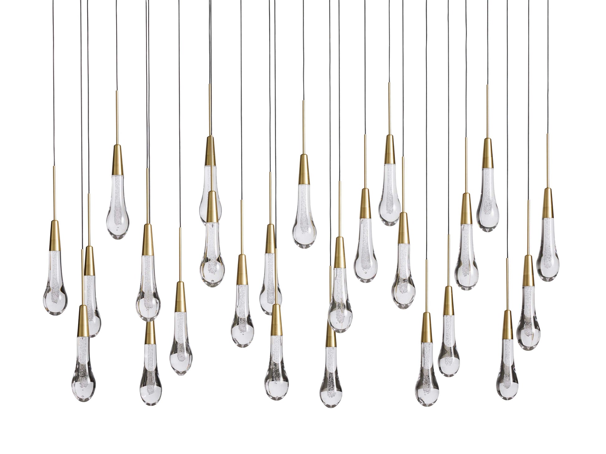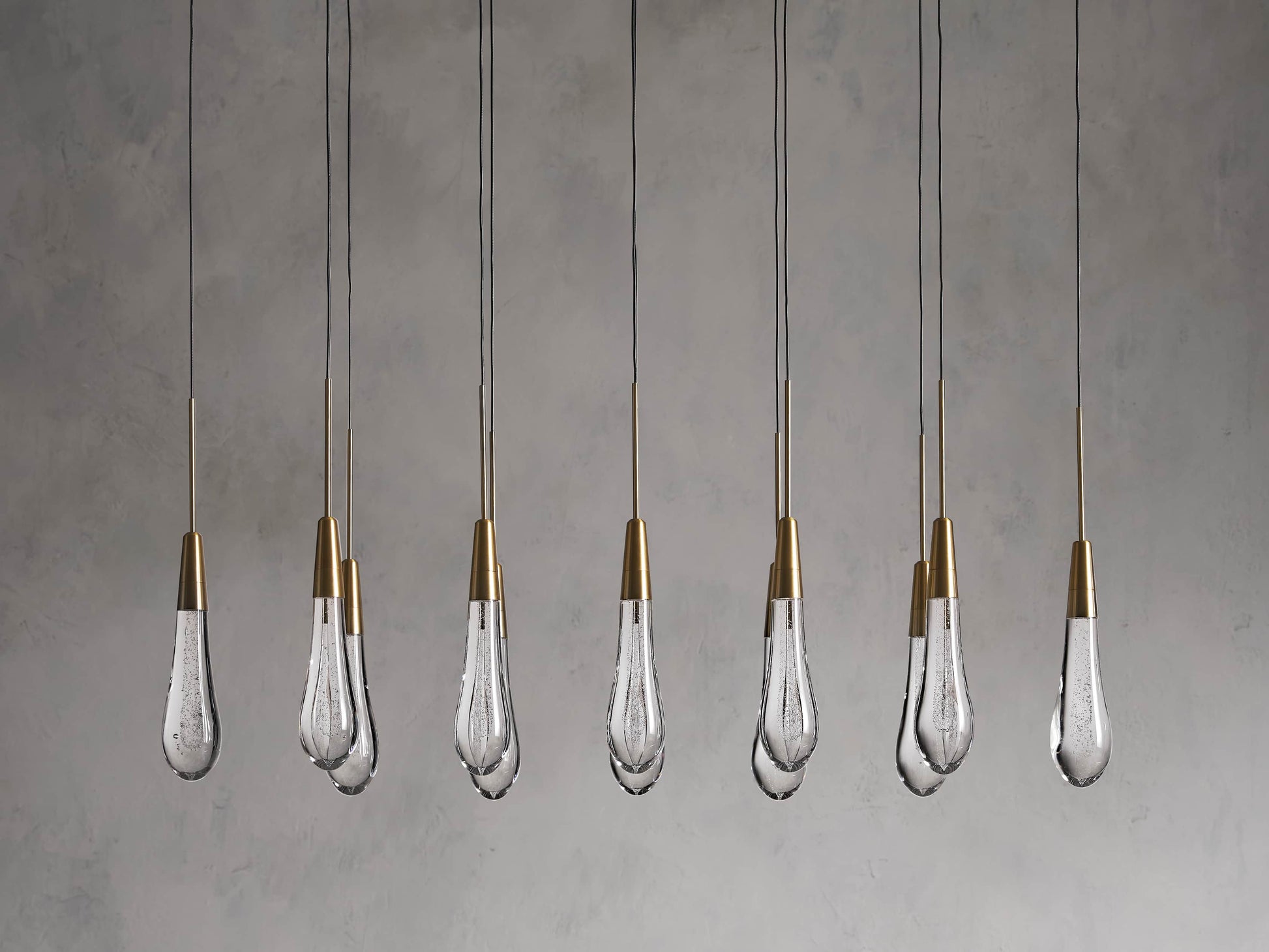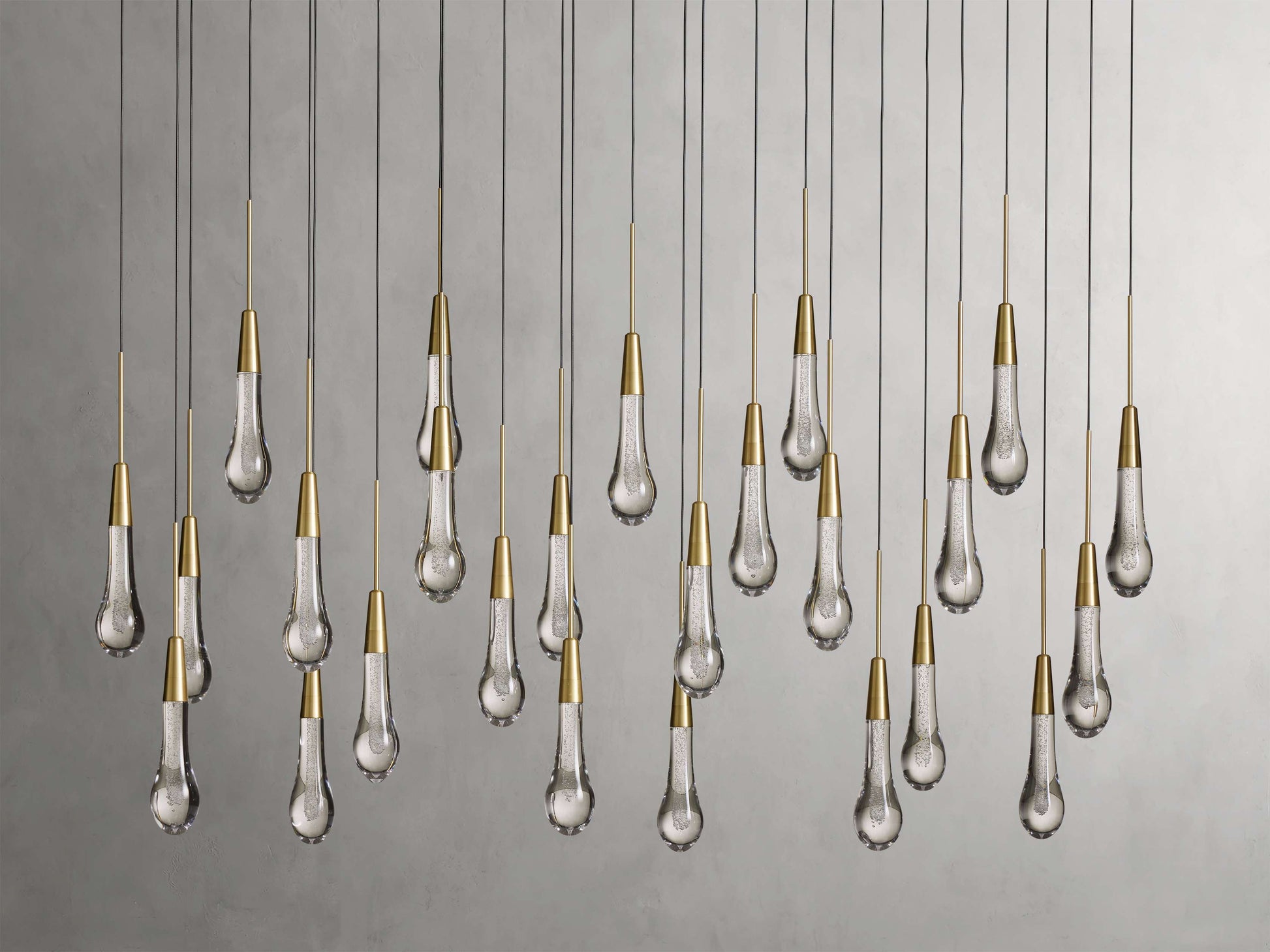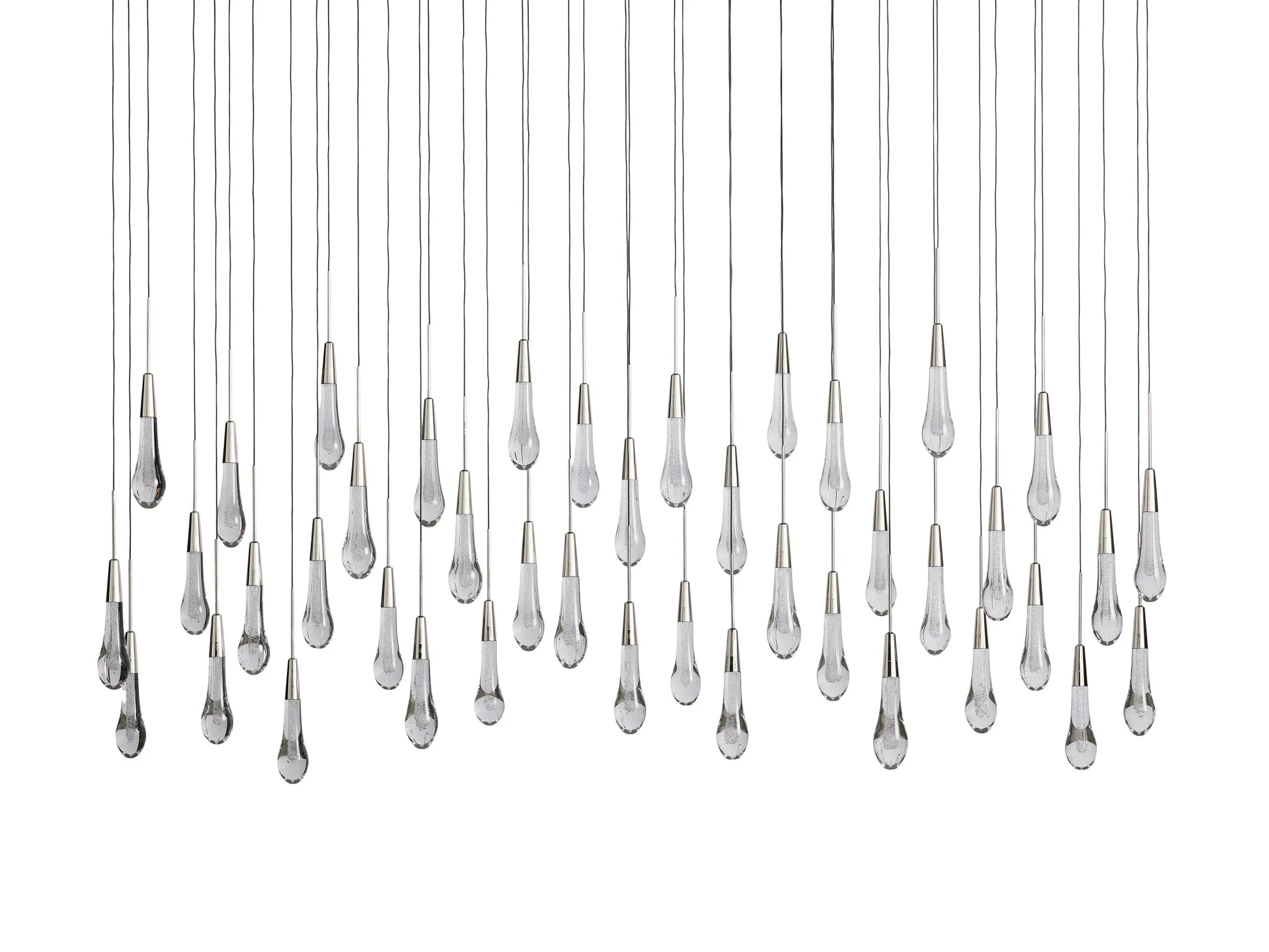 The Soltaire Raindrop LED Chandelier captures the elegance of nature with its cascading design of handcrafted seeded glass droplets. Suspended from adjustable black PVC cords, each drop glows with warm, integrated LED light, creating a stunning visual reminiscent of falling rain. Perfect for kitchens, dining areas, or staircases, this chandelier combines artistic beauty with modern functionality and energy efficiency.