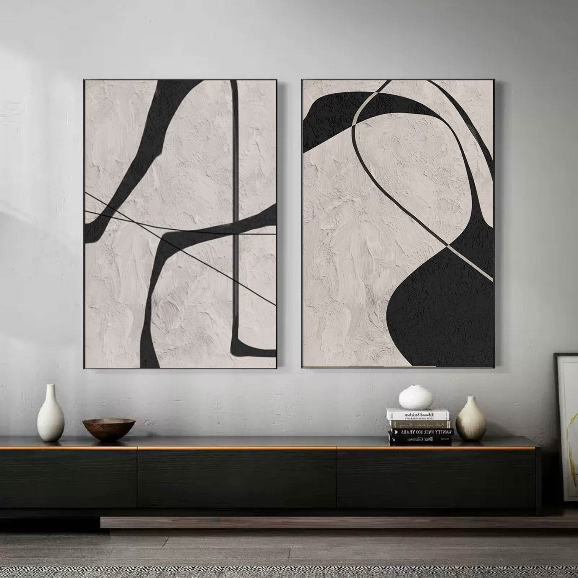 This two-piece textured canvas set features clean, flowing lines that bring modern balance and style to any space. Each panel is handcrafted with layered detailing that adds depth and a refined artistic presence. Made on high-quality linen for a crisp, contemporary finish that complements any interior. Custom size and framing options allow you to tailor the set perfectly to your décor.