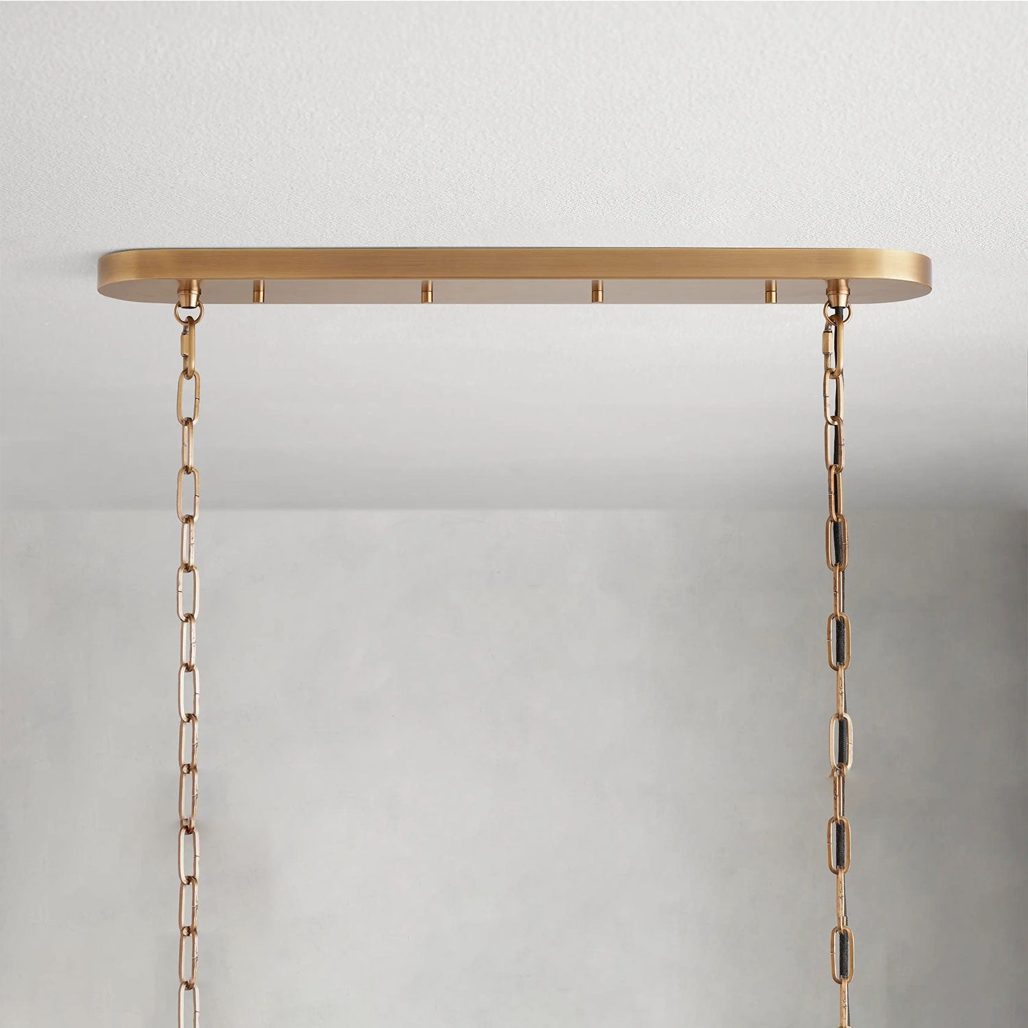The Textured Glass Oval Chandelier embodies refined craftsmanship with its gently layered glass panels and plated brass accents. Each hand-finished detail captures and diffuses light beautifully, creating a warm, ambient glow that enhances any setting. Perfect for dining rooms, living spaces, or grand entryways, this chandelier balances timeless Italian elegance with contemporary sophistication.