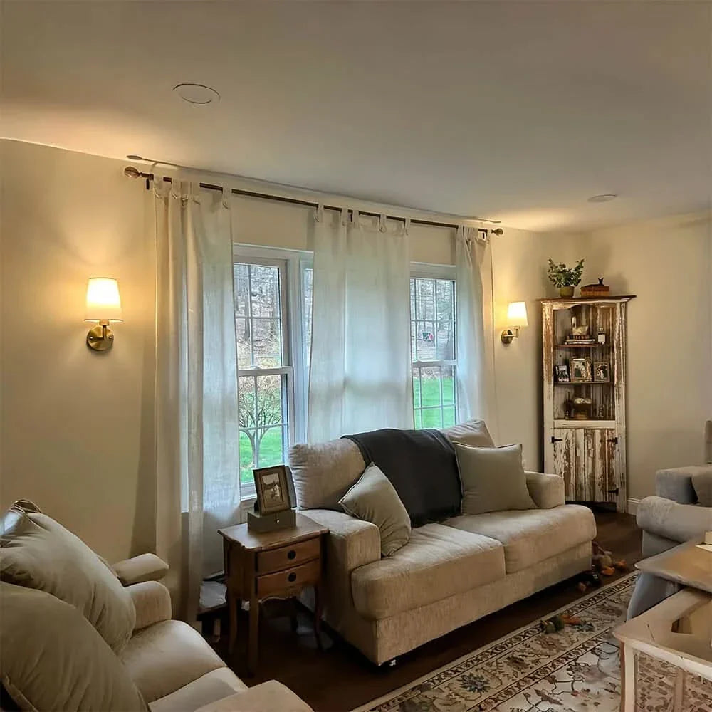 A stylish wireless wall Lamp set featuring soft fabric shades and a warm, elegant finish. Rechargeable and dimmable with three light modes, it installs effortlessly with no wiring and adds cozy, customizable lighting to bedrooms, hallways, living rooms, and more. Includes remote control for easy brightness adjustment.